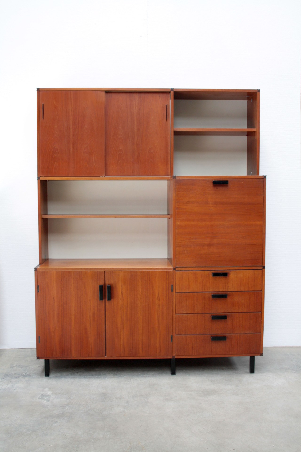 Omschrijving: Prachtige Pastoe Made to Measure kast van Cees Braakman. Zeer mooi vormgegeven en volledig demontabel, anders op te stellen of uitbreidbaar, oftewel werkelijk een meubel op maat. De kast is uitgevoerd in teakhout en heeft 4 lades van prachtig gebogen plywood, 2 deuren met daarachter een legplank, 2 teak houten schuifdeurtjes, 1 klep deur welke te gebruiken is als werkplek en nog 2 planken. De kast is 197 cm hoog, 154 cm breed en 45 cm diep.