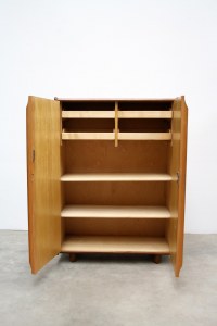 Staat: Deze kast is ongeveer 60 jaar oud en is dus niet meer als nieuw. Aan de onderkant van het rechter deurtje is een kleine fineerreparatie. Verder is de kast in erg goede vintage staat.