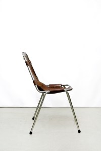 Omschrijving: Deze stoere vintage stoel is ontworpen door Charlotte Perriand voor ‘Station des arcs’, een skiresort in Frankrijk. De stoel heeft een verchroomd buizen frame en als zitting is gebruik gemaakt van stevig bruin tuigleer. Deze stoel zal erg mooi staan bij een verzameling vintage stoelen, maar is ook goed te gebruiken als bureaustoel.