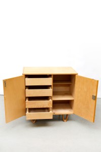 Omschrijving: Deze Pastoe DB02 cabinet is een kastje uit de bekende berken serie van Cees Braakman met de iconische luspoten. Naast de Japanse serie van Braakman zijn de meubels uit de Berken serie één van meest gewilde items van het moment. Dit kastje is een klein maar fijn kastje, en voor vele doeleinden te gebruiken. Hij past eigenlijk in elke ruimte. De kast heeft twee deurtjes met daarachter vier lades en een plank. Alles is uitgevoerd in massief en gefineerd berken hout. Deze cabinet is 80 cm breed, 50 cm diep en 79 cm hoog.