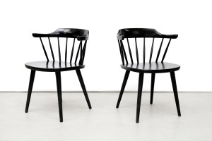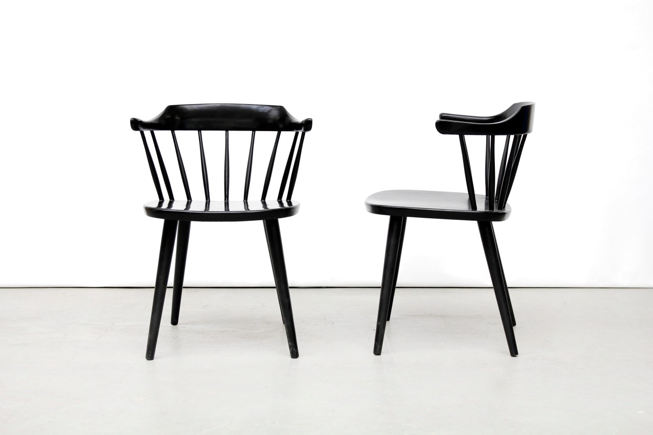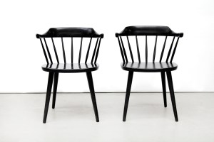 Omschrijving: Twee vintage spijlenstoelen van Pastoe. Deze stoelen zijn ontwerpen door Yngve Ekstrom uit Zweden en verkocht onder Pastoe in Nederland. Pastoe verkocht deze stoelen onder de naam FH01. De F stond voor Fauteuil en vandaar dat deze stoelen echt bedoeld zijn om als fauteuil te gebruiken. Vandaag de dag misstaan ze helemaal niet aan een eetkamertafel met een verzameling vintage stoelen.