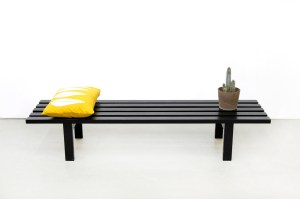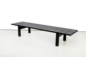 Omschrijving: Mooie zwart gelakte essenhouten lattenbank van Martin Visser voor ’t Spectrum. Lattenbank BZ is in 1960-1961 ontworpen door Martin Visser op verzoek van het Stedelijk Museum Amsterdam. De lattenbank is multifunctioneel bruikbaar, zo kan hij gebruikt worden als bankje aan tafel, een bed bankje, als salontafel, als een bankje voor in de hal met schoenen, als plantentafel, als boekenkast enzovoort. Het bankje is aan de onderkant gemerkt en heeft een breedte van 160 cm, een hoogte van 30 cm en een diepte van 41,5 cm.
