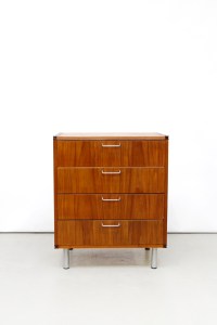 Omschrijving: Prachtig tijdloos kastje van Pastoe, ontworpen door Cees Braakman. Dit kastje komen van de ET62 serie waarbij er gebruik is gemaakt van chromen handgreepjes en verstelbare chromen pootjes. Kastjes uit de ET62 serie zijn vrij zeldzaam en worden ook wel Pastoe naar Maat, of Made to Measure genoemd. Het ladenblok bestaat uit vier prachtige gebogen houten anti dust lades. De laden kast is 75 cm hoog, 62,5 cm breed en 45 cm diep.