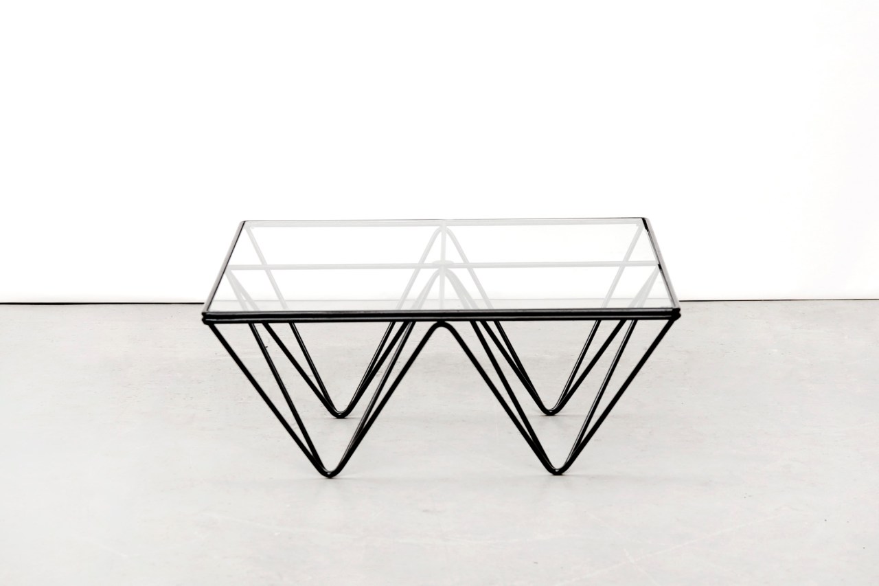 Omschrijving: Salontafel Alanda van Paolo Piva. Dit is ondertussen een echte design icoon aan het worden. Het minimale ontwerp met het zwart gelakte metalen frame en glasplaat als blad is tijdloos. De tafel is 100 cm bij 100 cm en is 35 cm hoog.