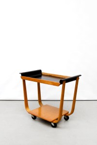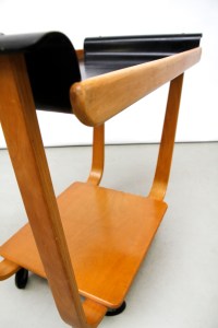 Omschrijving: Vintage theewagen van Cees Braakman voor Pastoe. Ontworpen in de begin jaren 50 en is gemaakt van berken plywood en een zwart gelakt blad. Een echte icoon welke ook zeer goed gebruikt kan worden als bijzettafel.