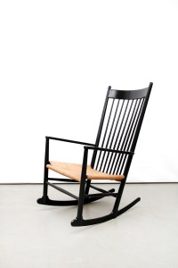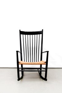 Omschrijving: Zwart gelakte schommelstoel van Hans Wegner. Prachtig strak design voor een schommelstoel. De stoel is origineel zwart, maar is waarschijnlijk om hem even ‘bij te tippen’ weer met zwart over geschilderd. Dit is niet opvallend.