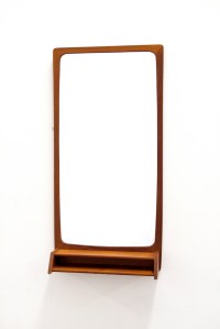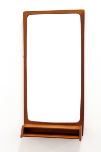 Omschrijving: Prachtige Deens design spiegel met teakhouten frame en bakje om bijvoorbeeld kam of sleutels neer te leggen. Typisch mid century modern Deens design vormgeving. Zeer leuk voor bijvoorbeeld in de gang of de slaapkamer.