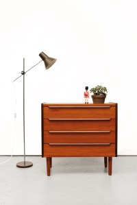 Omschrijving: Zeer mooi typisch Deens design cabinet met 4 lades. Uitgevoerd in een mooie kwaliteit teak fineer en massief teak houten greepjes. Door zijn formaat is dit kastje op veel plekken neer te zetten. Het kastje is 70 cm hoog, 70 cm breed en 40 cm diep.
