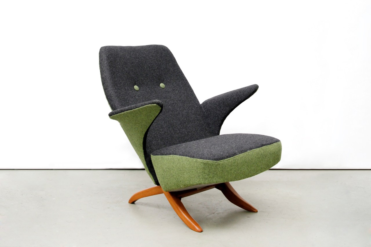 Omschrijving: Zeer mooie Pinguin chair van Theo Ruth voor Artifort. Geïnspireerd door de tweedelige stoelen uit Afrika, ontwierp Theo Ruth deze stoel die ook uit twee delen bestaat. De zitting en de rugleuning haak je namelijk in elkaar. Deze fauteuil is tijdloos en past in elk interieur. Een echte design klassieker.