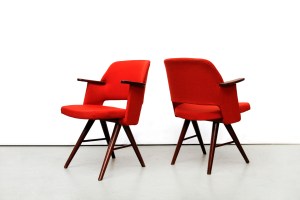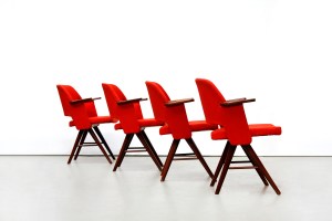 Omschrijving: Vier vintage FT30 eetkamerstoelen van Cees Braakman voor Pastoe. Deze prachtige stoelen hebben een teakhouten frame en hebben nog de originele rode ploegstof. De dining chairs zijn niet alleen erg mooi, maar zitten ook nog eens erg comfortabel. De stoelen hebben een totale hoogte van 80 cm en een zithoogte van 45 cm. De stoelen zijn 58 cm breed en 54 cm diep.