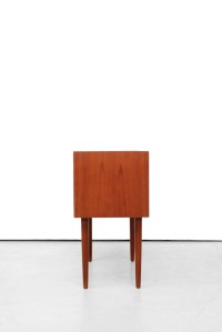 Omschrijving: Zeer mooi typisch Deens design cabinet met 2 lades. Uitgevoerd in een mooie kwaliteit teak fineer en massief teak houten greepjes. Prachtig is ook de doorlopende houtnerf over de lades heen. Door zijn formaat is dit kastje op veel plekken neer te zetten. Het Deense ladenkastje is 62 cm hoog, 58 cm breed en 33 cm diep.