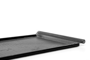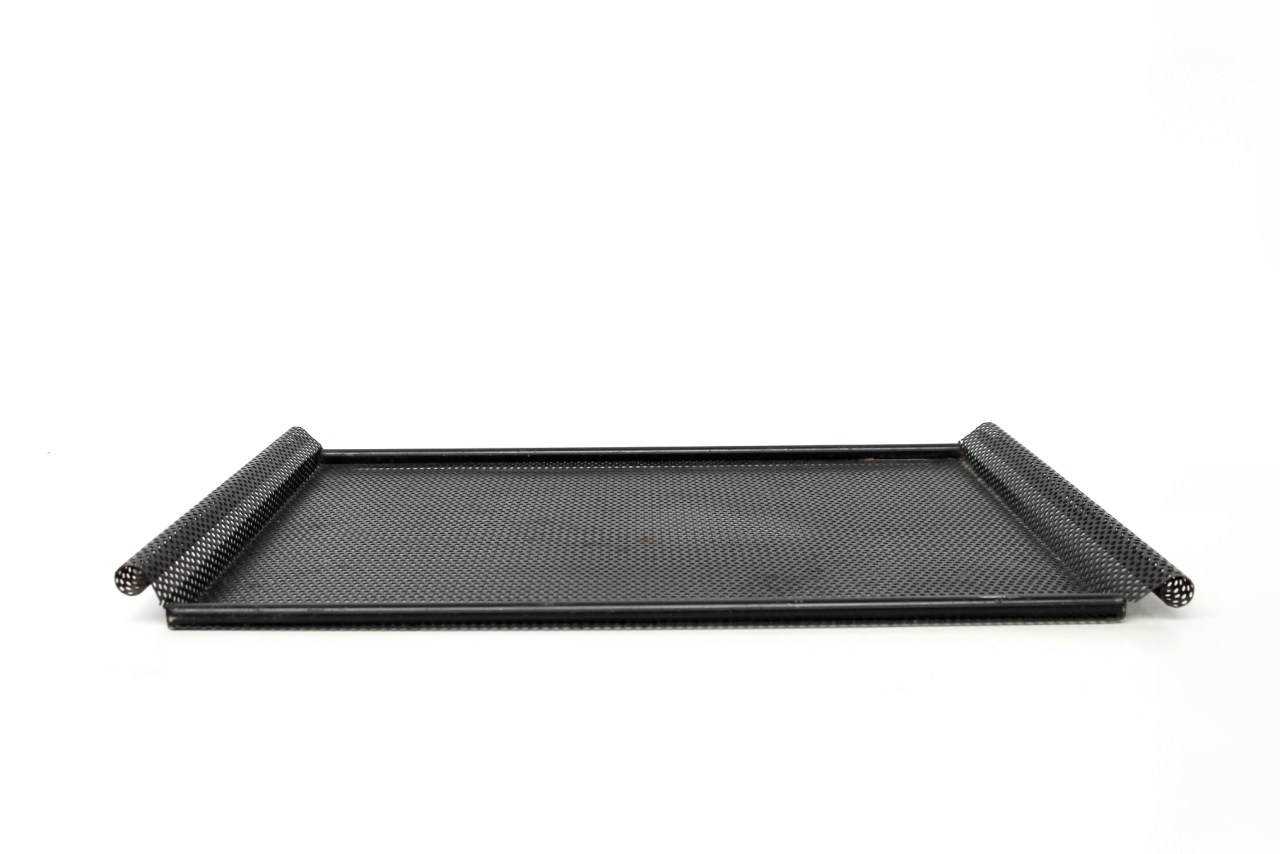 Omschrijving: Mooi vintage dienblad van geperforeerd metaal uit de vijftiger jaren. Het design wordt toegeschreven aan Mathieu Mategot.