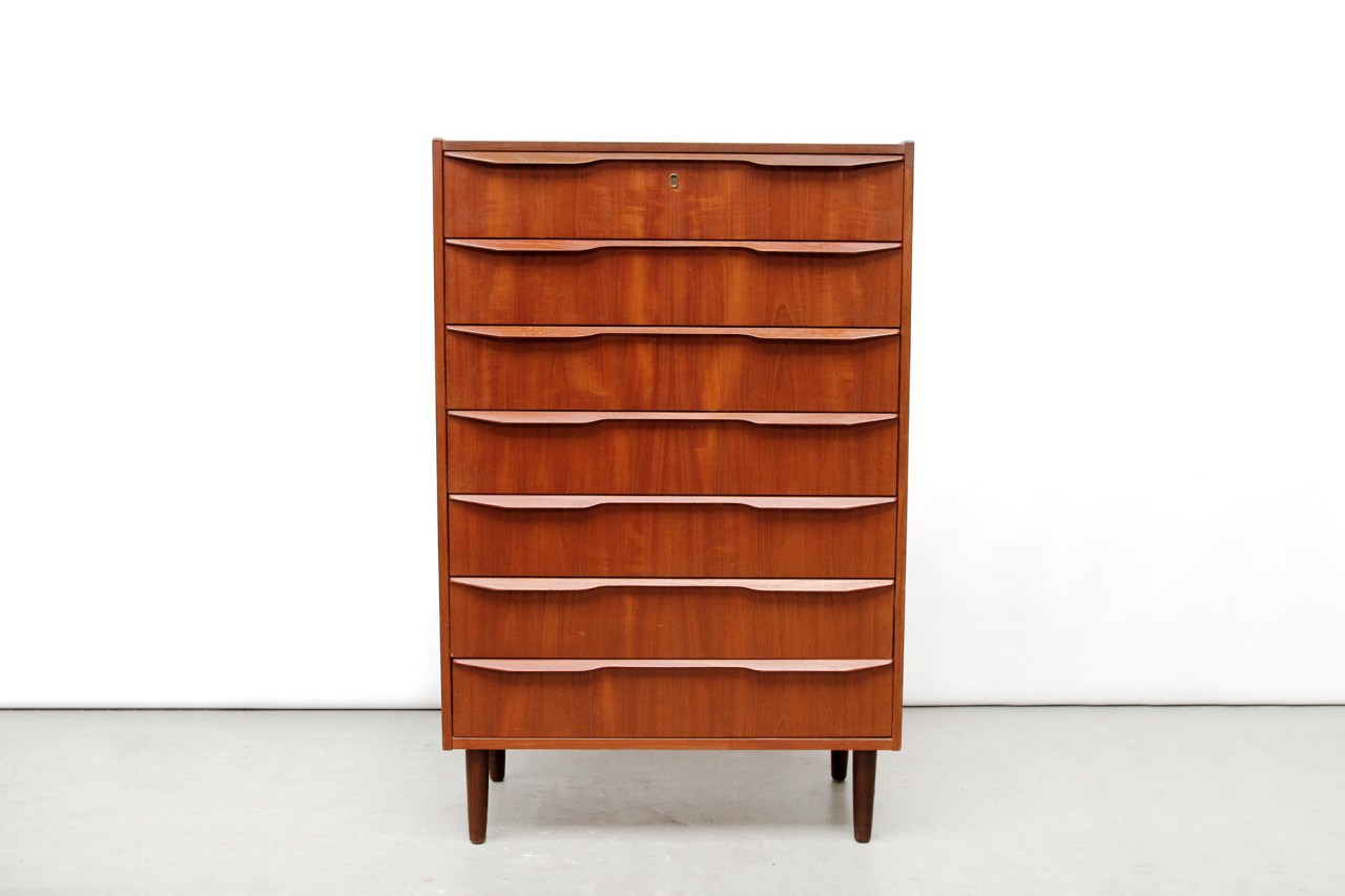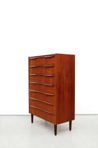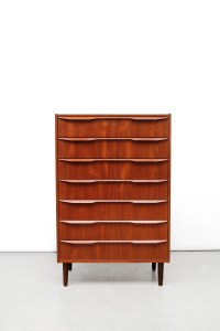 Omschrijving: Zeer mooi typisch Deens design cabinet met 7 lades. Uitgevoerd in teak fineer en massief teak houten greepjes. Erg leuke kast voor in de gang, in de woonkamer, of zelfs als commode te gebruiken.
