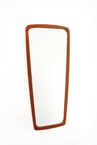 Omschrijving: Prachtige Deens design spiegel met teakhouten frame. Bijzonder aan deze spiegel is de grootte.