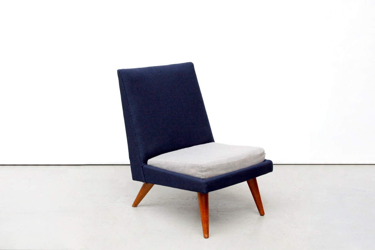 Staat: De stoel is opnieuw gestoffeerd en de kussen is origineel. Hij verkeert daarom in erg goede vintage staat.
