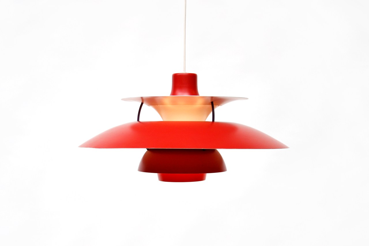 Omschrijving: Een van de bekendste lampen ter wereld, de PH5 van Poul Henningsen. Dit is een originele lamp met merkje. Wat deze lamp bijzonder maakt is dat hij zo ontworpen is dat je maximaal licht hebt, maar nooit de schittering in je ogen krijgt. Deze design klassieker is perfect voor boven de eetkamertafel, maar kan ook zeker op een andere plek in je interieur gehangen worden. De PH5 heeft een diameter van 50 cm en een hoogte van 26,5 cm.