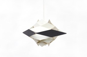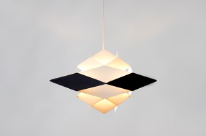 Omschrijving: Zeldzame lamp van Preben Dahl. Over deze ontwerper is erg weinig bekend, behalve dat hij een handje vol lampen heeft ontworpen. Zo ook deze hang lamp, die uit de Symfoni serie komt. De lamp is gemaakt van meerde lagen gelakt staal die in een diamant vorm gebogen zijn. Heel verfijnd is het petrol blauwe kleuraccent op de middelste laag. Hierdoor krijg de lamp een prachtige uitstraling. Dit is de kleinere variant van de lamp die we eerder verkochten. Een unieke lamp die een mooie plek verdient.