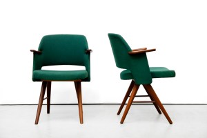 Omschrijving: Twee vintage FT30 eetkamerstoelen van Cees Braakman voor Pastoe. Deze prachtige stoelen hebben een teakhouten frame en hebben nog de originele groene ploegstof. De dining chairs zijn niet alleen erg mooi, maar zitten ook nog eens erg comfortabel. De stoelen hebben een totale hoogte van 80 cm en een zithoogte van 45 cm. De stoelen zijn 58 cm breed en 54 cm diep.