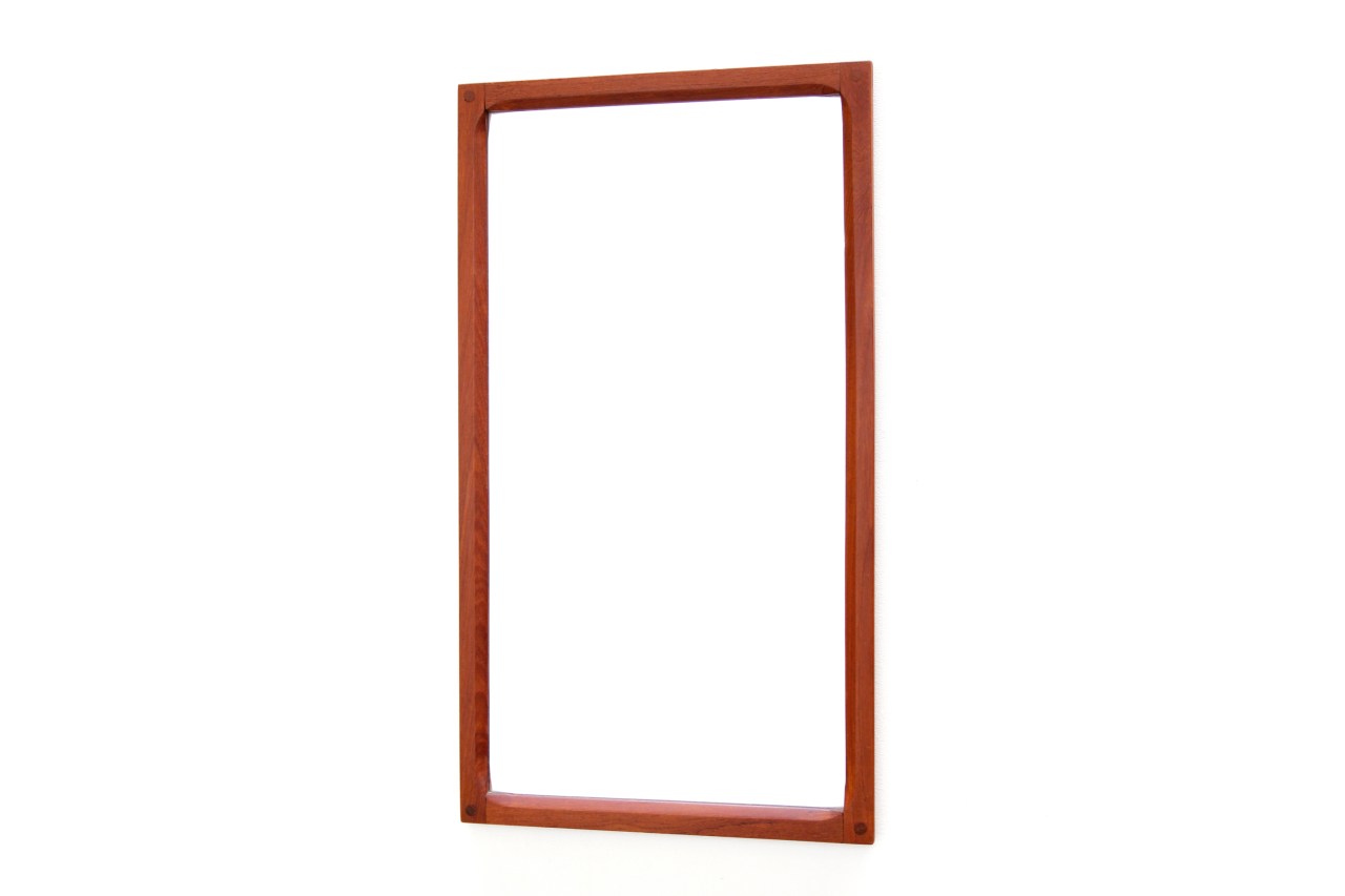 Omschrijving: Erg mooie teakhouten spiegel ontworpen door Kai Kristiansen en geproduceerd door Aksel Kjersgaard in Odder Denemarken. Vaak wordt ten onrechte gedacht dat Aksel Kjersgaard de ontwerper van deze spiegels is, maar Aksel Kjersgaard is voornamelijk producent die onder andere een aantal ontwerpen van Kai Kristiansen in productie heeft genomen. Deze spiegel is erg mooi en ambachtelijk gemaakt met prachtige houtverbindingen. De spiegel is 80 cm hoog, 44 cm breed en 2 cm diep.