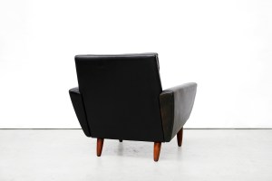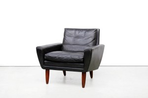 Omschrijving: Bijzonder mooie zwart lederen fauteuil van Georg Thams uit Denemarken. Deze easy chair heeft net als de bank de naam: ‘Model 64’, omdat deze ontworpen is in 1964. Georg Thams is geen bekende Deense ontwerper in Nederland, maar wel een ontwerper die eind jaren 50 en begin jaren 60 hele mooie zitmeubels heeft ontworpen. Hij werkte onder andere samen met de veel bekendere Kai Kristiansen. De stoel is uitgevoerd in dik zwart leer en heeft prachtige palissander pootjes. In de kussens zitten donsveren waardoor hij erg lekker zit. Kortom een prachtige fauteuil van super Deense kwaliteit die erg mooi staat als set bij de George Thams Bank.