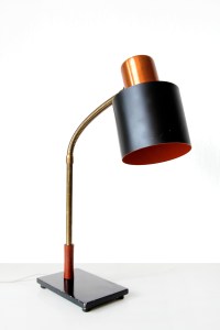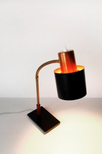 Omschrijving: Prachtige tafellamp van Jo Hammerborg voor Fog & Mørup. Het gaat om het model ‘Beta’ en deze lamp is gemaakt van koper met zwart gelakt aluminium. De voet is gelakt gietijzer en de lamp heeft en teak houten detail. Een mooie lamp die goed zal staan in elk interieur.