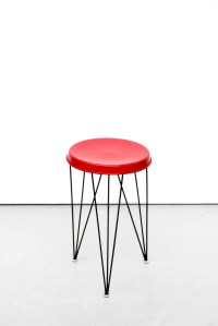 Omschrijving: Erg mooie minimalistische kruk van Tjerk Reijenga voor Pilastro. Bijzonder is het zwart gelakte draadstalen onderstel. De pootjes zijn een lust voor het oog. De zitting is rood gelakt metaal. Een eye-catcher voor elk interieur. Bedoelt als kruk, maar kan ook zeker gebruikt worden als bijzettafel of plantentafel. Het krukje is 50 cm hoog en 30 cm in doorsnede.