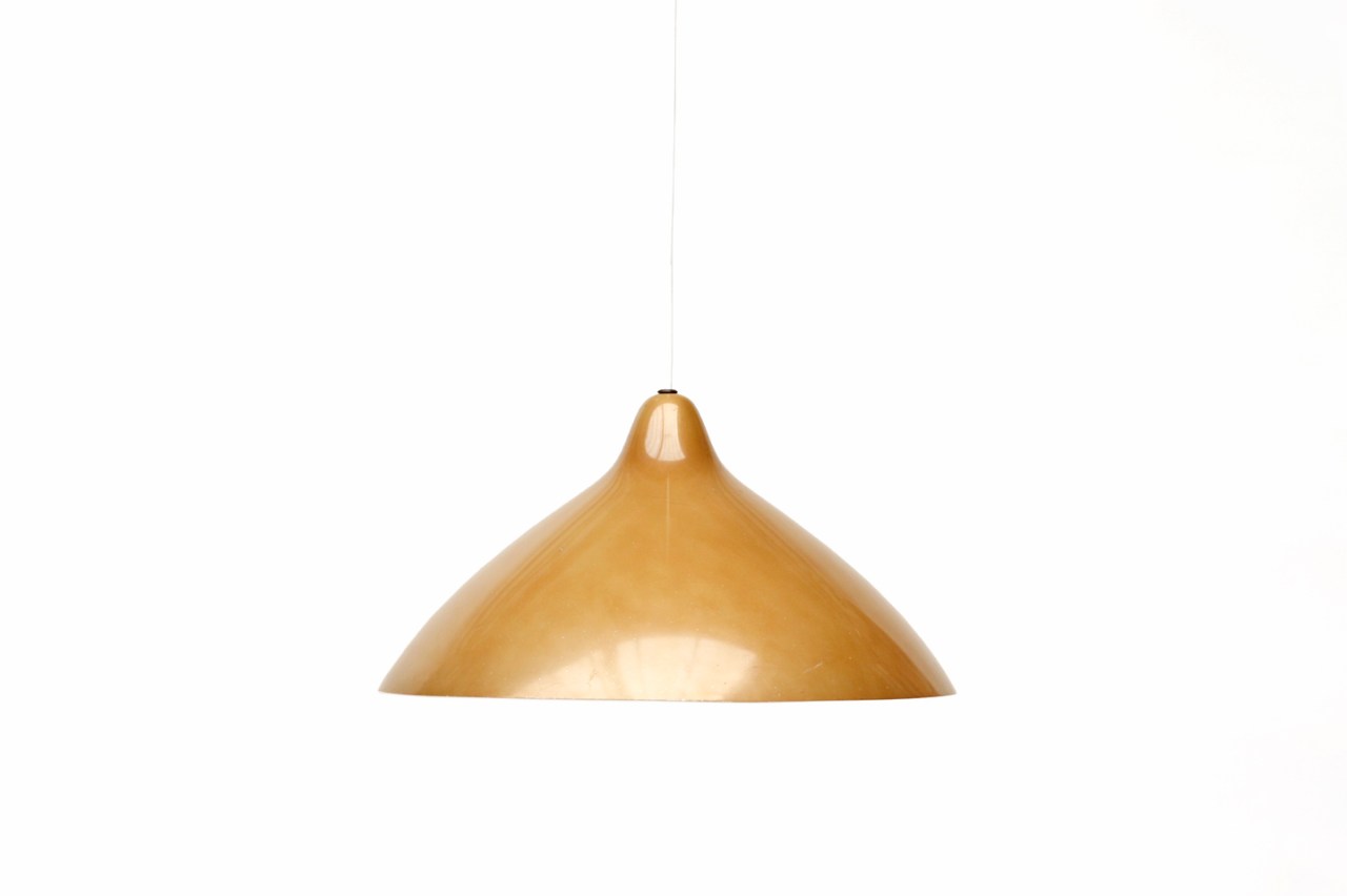Omschrijving: Simpele maar mooie hanglamp van Lisa Johansson-Pape. Deze messing brons kleurige lamp komt uit Finland en is een echte Scandinavische design icoon. De hanglamp is 22 cm hoog en heeft een diameter van 44 cm.