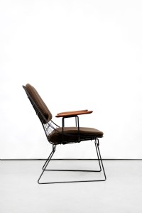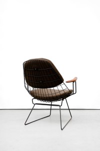 Omschrijving: Mooie originele vintage draad fauteuil van Cees Braakman en Adriaan Dekker voor Pastoe. De FM06 is de lounge chair met teak armleggers variant van de eetkamerstoelen SM05. De Pastoe FM06 Wire stoel werd in 1958 ontworpen door Cees Braakman. Spraakmakend aan deze stoel was dat het een van de eerste collecties werd die volledig uit draadstaal werd gemaakt. De stoel heeft een originele kussens die opnieuw bekleed zijn met prachtige zeer kwalitatieve bruin vilten stof.