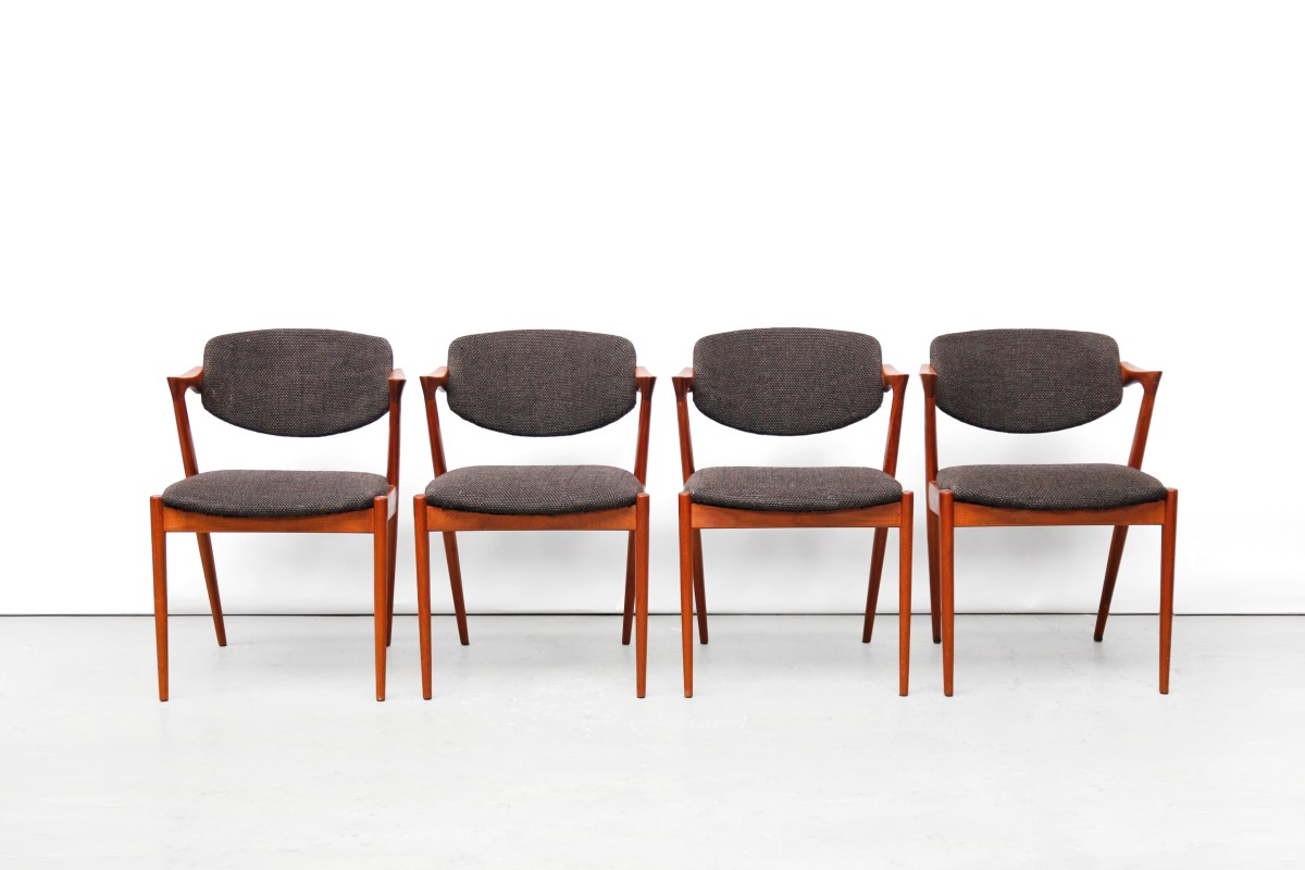 Vier teak Kai Kristiansen No.42 eetkamerstoelen te koop bij VAN ONS vintage design Amsterdam Gepubliceerd 1 september 2015 at 2419 × 1613 in Vier teak Kai Kristiansen No.42 eetkamerstoelen Volgende →