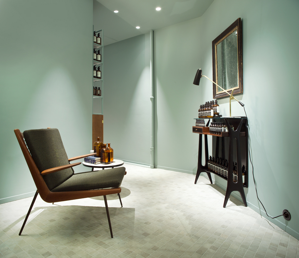 Furniture van OnS in the Aesop store in Paris France Date: 8 oktober 2015Author: VAN ONS Categorie: Blog Tags: Aesop, Boomerang, Chair, client, cosmetics, France, Orla Molgaard Nielsen, Paris, Peter Hvidt Berichtnavigatie ← VAN ONS in newspaper Parool 23 september 2015 Twee Louis van Teeffelen eetkamerstoelen voor Webe → Our Peter Hvidt and Orla Molgaard Nielsen Boomerang chair in the new Aesop store at the rue Jean Bologne in Paris looks really beautiful!