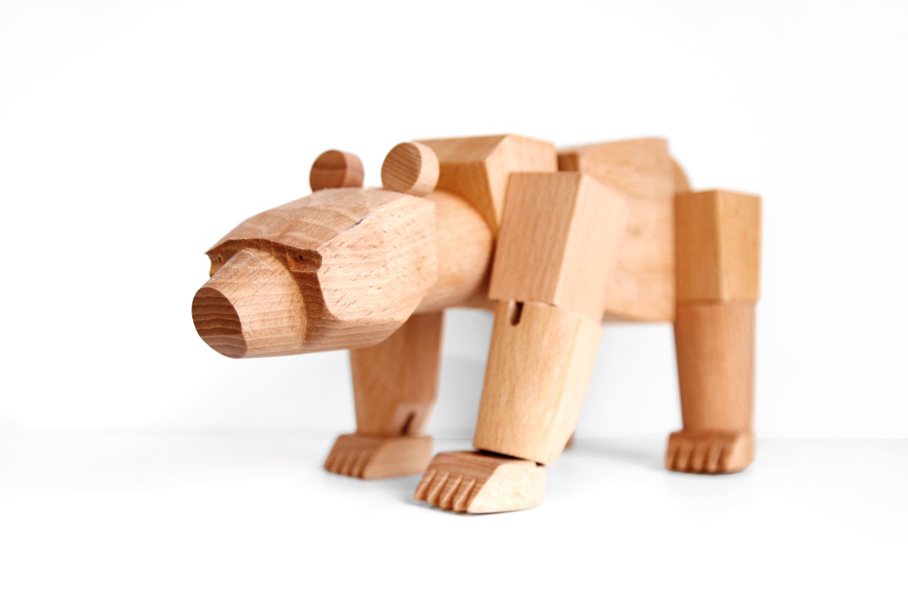 Staat: De houten beer is nieuw en daarom in goede staat.