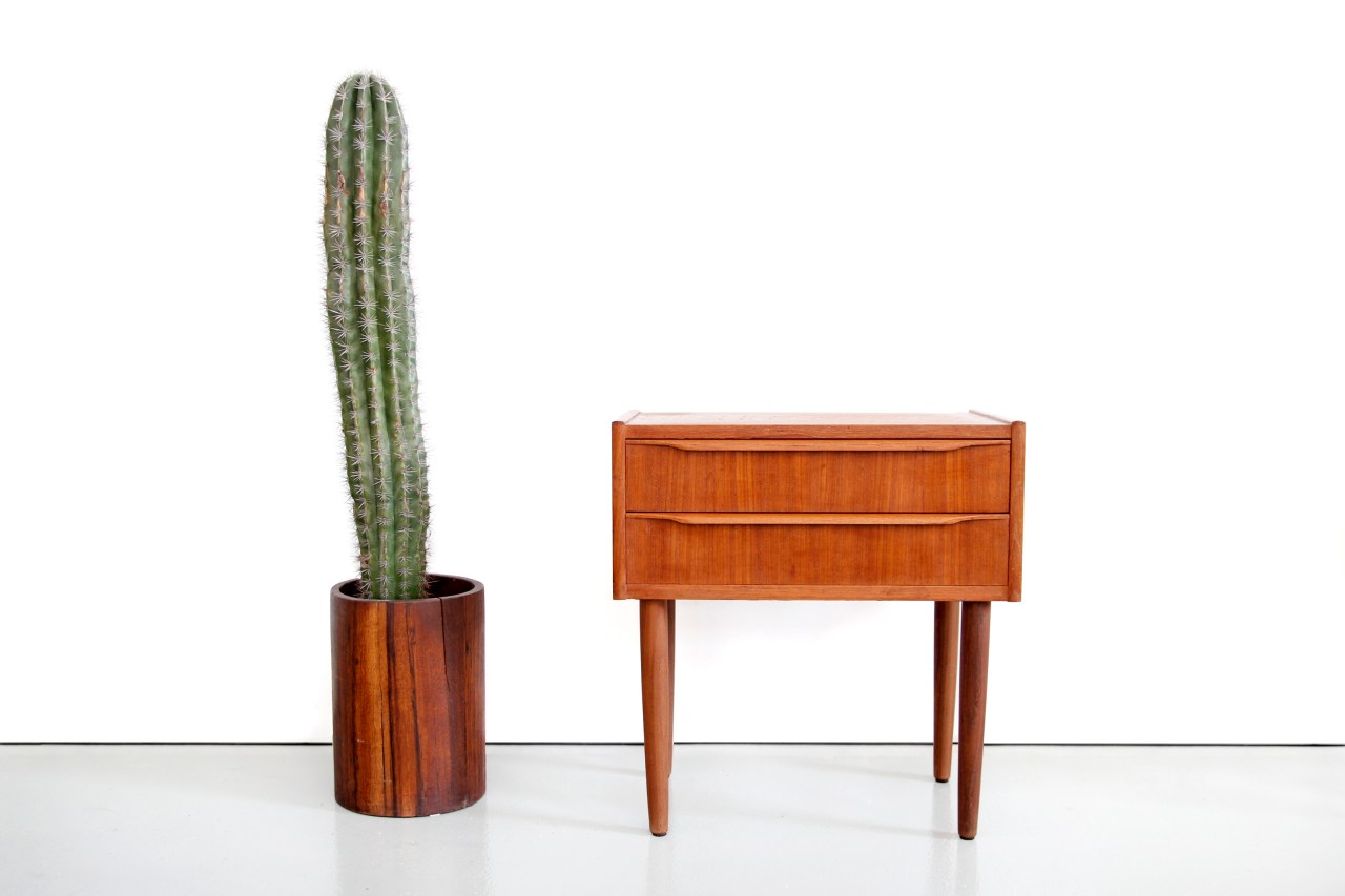 Omschrijving: Zeer mooi typisch Deens design cabinet met twee lades. Uitgevoerd in teak fineer en massief teak houten greepjes. Erg leuk kastje voor in de gang of in de woonkamer.