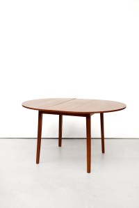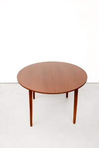 Omschrijving: Mooie vintage ronde teakhouten eetkamertafel.De tafel is uitschuifbaar en heeft een extra blad die ertussen geschoven kan worden. Zo is er ineens ruimte voor twee eters meer. De tafel is 74 cm hoog en heeft een diameter van 104 cm. Uitgeklapt is hij 134 cm.