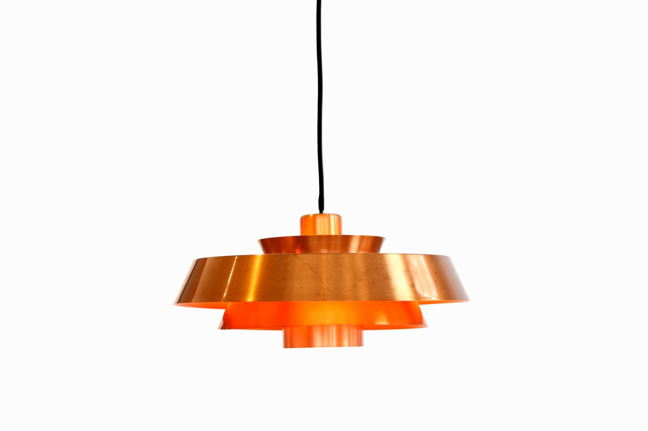 Omschrijving: Bijzondere Jo Hammerborg hanglamp genaamd ‘Nova’. De lamp is gemaakt van koper en is nog helemaal origineel. Zelfs als deze lamp uitstaat is het een geweldige eye-catcher. De diameter is 41cm en de hoogte is 18cm.