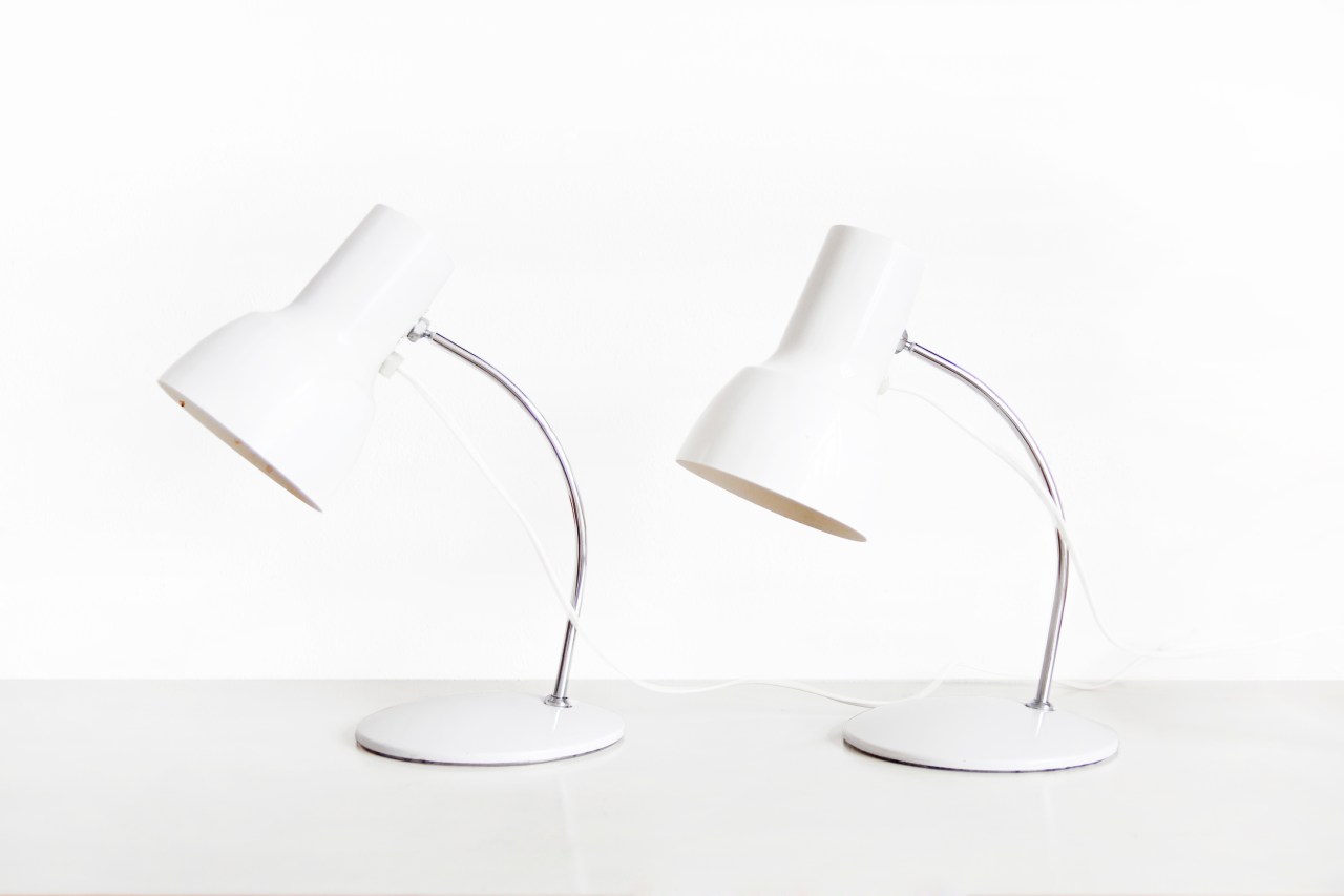 Omschrijving: Stijlvolle mid century modern tafel lamp, welke ook te gebruiken zijn als nachtlampjes of bureaulamp met verstelbare lampenkap uit Tsjecho-Slowakije. Deze lamp is in de jaren 70 ontworpen door Josef Hurka en geproduceerd door Napako. De lampen hebben een standaard E27 fitting.