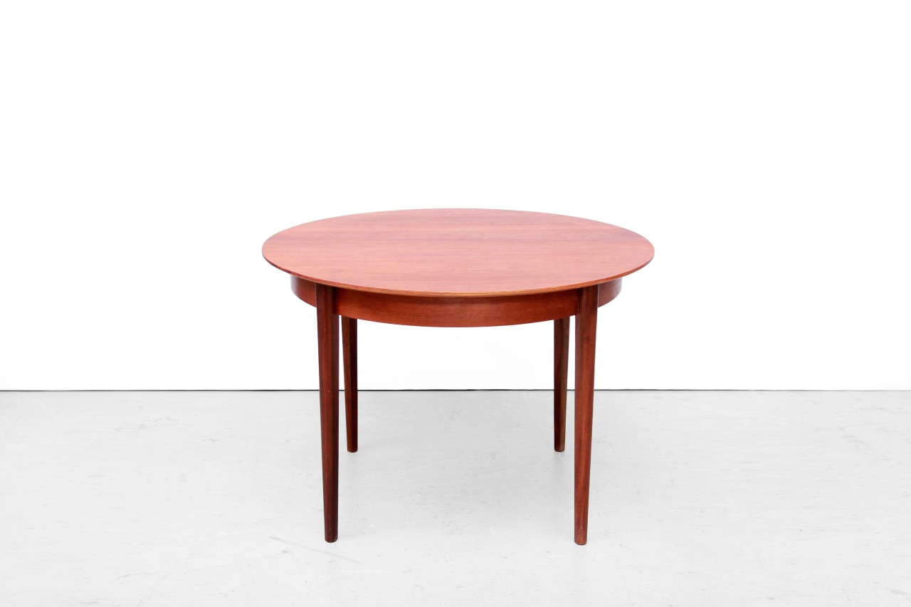 Omschrijving: Minimalistische en erg mooie eetkamertafel van Cees Braakman voor Pastoe. De tafel, met modelnaam TT05 (Teak Tafel 05) is uitschuifbaar en daardoor een halve meter verlengbaar. De tafel is gemaakt van teakfineer en massief teakhout. Samen met onze Pastoe SB37 stoelen vormen ze een erg mooie exclusieve eetkamerset. De tafel is 105 cm in diameter en 70 cm hoog. Uitgeschoven is de tafel 155 cm lang.