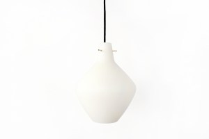 Omschrijving: Prachtige glazen lampen toegeschreven aan Stilnovo. Deze handgeblazen opaal witte hanglampen komen uit Italië en zijn bijzonder mooi afgewerkt. De kelk hangt aan een messing armatuur en is voorzien van een nieuwe zwarte stoffen kabel. Erg mooie aanwinst voor elke interieur stijl. De lampen zijn 32 cm hoog en hebben een diameter van ongeveer 30 cm.