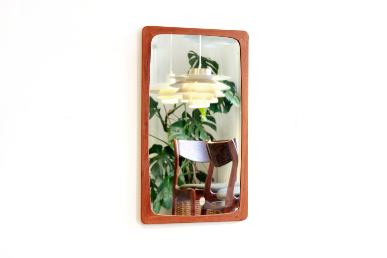 Omschrijving: Prachtige verfijnde Deens design spiegel gemaakt van massief teakhout. Typische Deense spiegel die zeer mooi afgewerkt is. Perfect voor elk interieur.