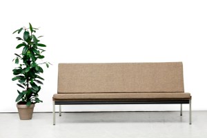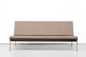 Omschrijving: Zeer mooie driezitsbank ontworpen door Coen de Vries voor Gispen in 1967. Dit model, model 1741 komt uit de G3 serie van Gispen en was onderdeel van het BZ (Beter Zitten) 2000 programma. Het onderstel is gemaakt van verchroomde vierkanten stalen buizen, het frame is gemaakt van gestoffeerd plaatstaal en de schruimrubberen kussen zijn gestoffeerd met een mooie grove gemêleerde wollen stof. De bank werd toen der tijd al aangeprezen als ‘stijlvol, zonder nadrukkelijkheid en zonder probleem’ en dat is eigenlijk 50 jaar later nog steeds van toepassing. Deze geweldige bank is erg stijlvol, tijdloos, geen poespas en zit heerlijk. De bank is in totaal 172 cm breed, 70 cm diep en 75 cm hoog. Hij heeft een zithoogte van 40 cm.