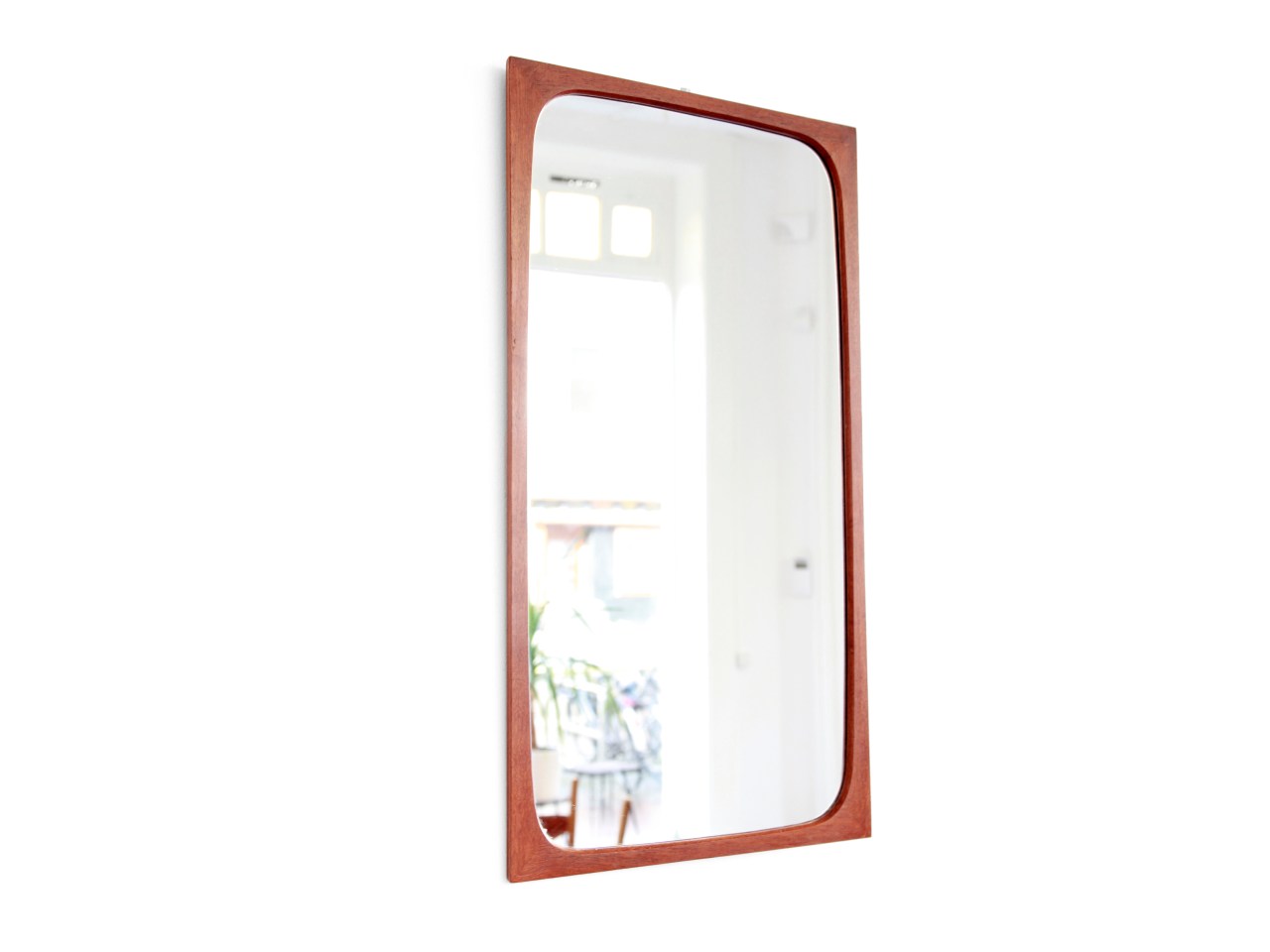 Omschrijving: Prachtige verfijnde Deens design spiegel gemaakt van massief teakhout. Typische Deense spiegel die zeer mooi afgewerkt is. Perfect voor elk interieur.