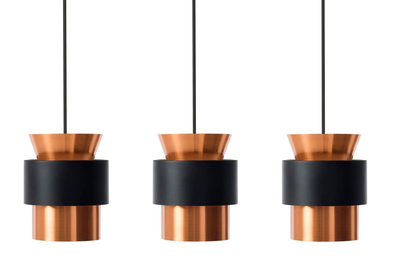 Omschrijving: Prachtige massief koperen hanglamp met zwart gelakte ring. Wij hebben drie lampen voorradig, prachtig als set van drie boven de keuken of een lange eetkamertafel, maar ze zijn ook per stuk te koop. De lampen zijn afkomstig uit Denemarken en zijn hoogstwaarschijnlijk geproduceerd door Fog en Morup. De lamp is helaas niet gemerkt.