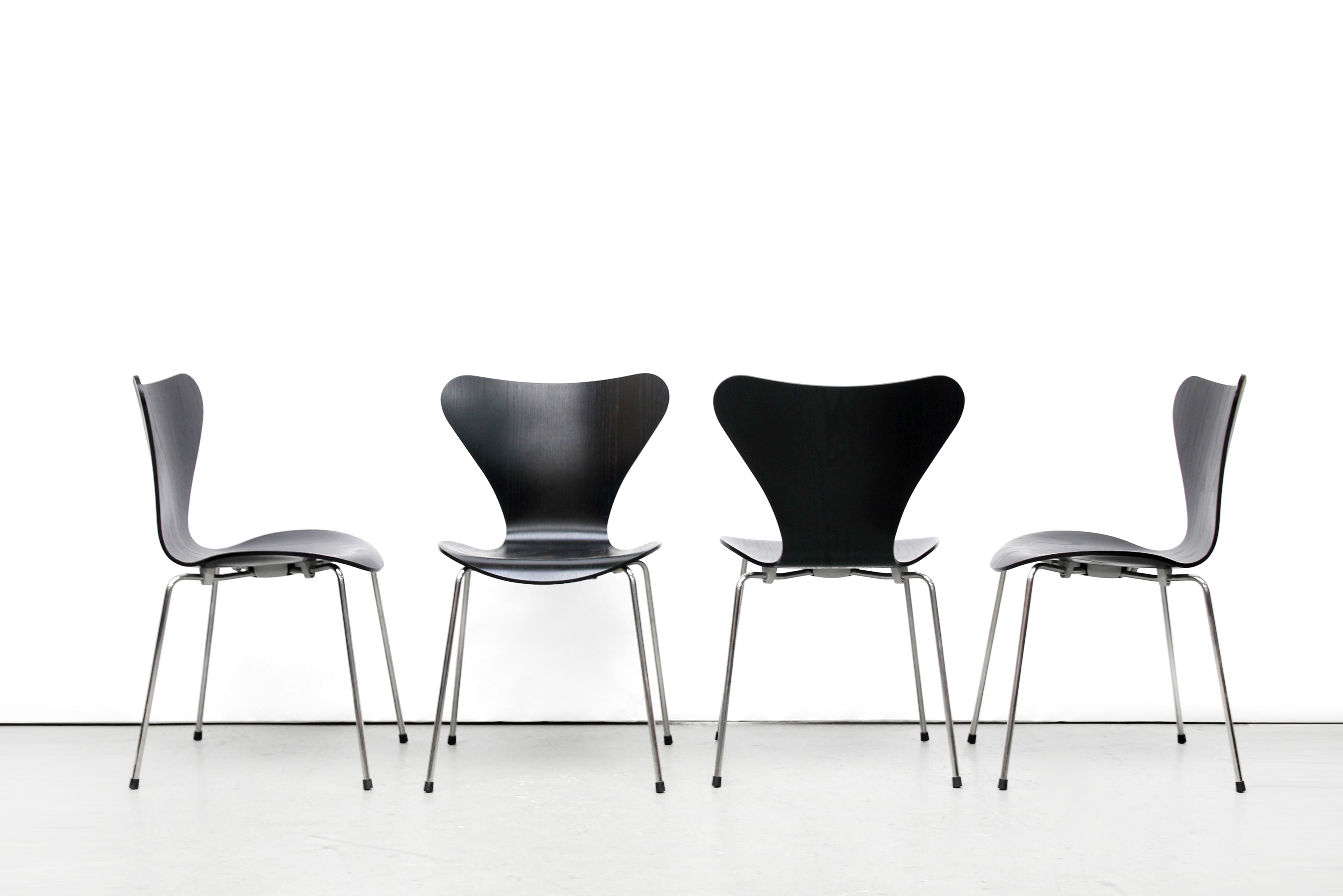 Set van 4 Arne Jacobsen vlinderstoelen uit de 7 series butterfly chairs danish design Gepubliceerd 25 februari 2017 at 3102 × 2069 in Vier zwarte Arne Jacobsen vlinderstoelen model 3107 ← Vorige Volgende →