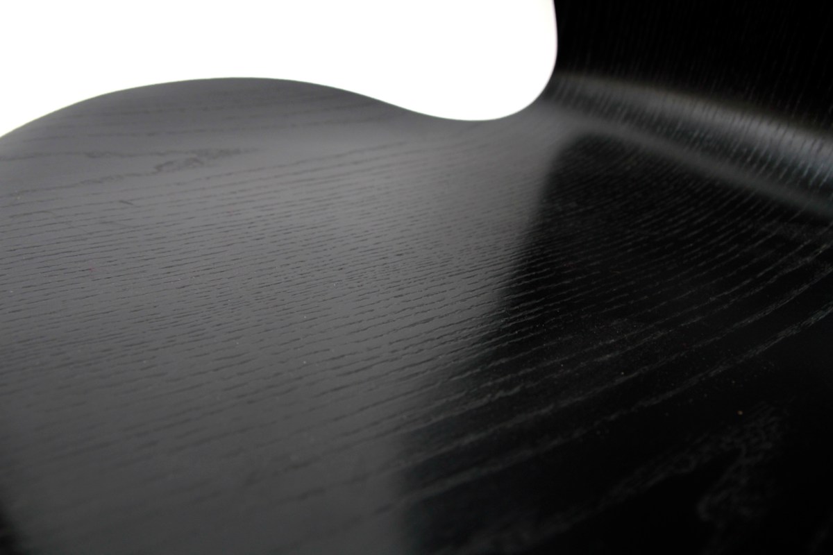 Fritz Hansen Arne Jacobsen 7 series butterfly chairs danish design black detail woodgrain Gepubliceerd 25 februari 2017 at 3456 × 2304 in Vier zwarte Arne Jacobsen vlinderstoelen model 3107 ← Vorige Volgende →