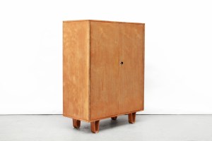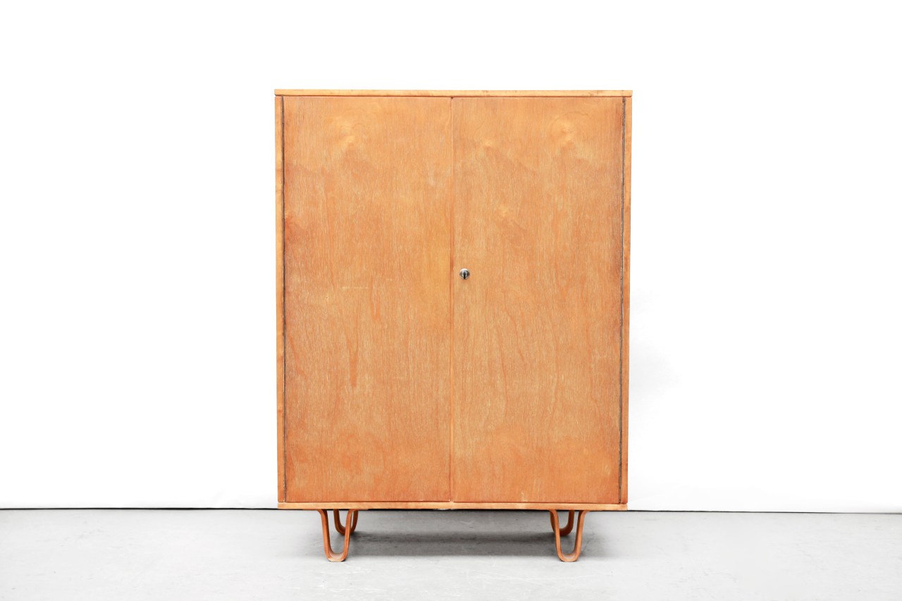 Omschrijving: Cabinet model CB06 ontworpen door Cees Braakman voor Pastoe. Dit wandmeubel is afkomstig uit de berkenserie en heeft prachtige u vormige luspoten. Deze kast heeft een prettig formaat waarbij hij groot genoeg is om een hoop in op te bergen, maar toch klein genoeg om hem op meerdere plekken in huis kwijt te kunnen. Achter de twee deuren bevinden zich twee lades en een plank. Deze design klassieker is 119 cm hoog, 88 cm breed en 45 cm diep.