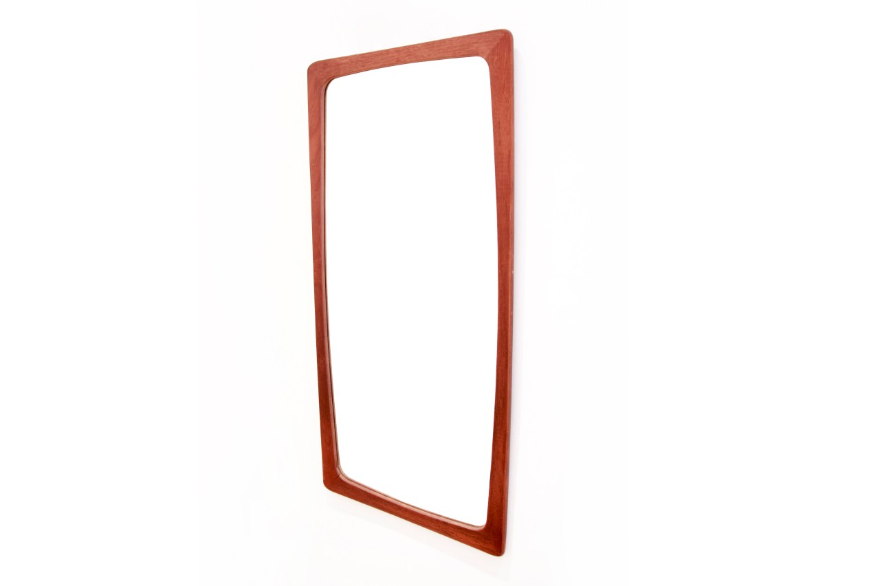 Omschrijving: Mooie Deens design spiegel gemaakt van massief teakhout. Typische Deense spiegel die mooi afgewerkt is door middel van afgeronde hoeken en gebruik heeft gemaakt van organische vormgeving. Geschikt voor elk type interieur. Deze spiegel is 83 cm hoog en 39,5 cm breed.