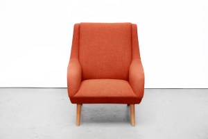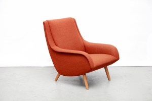 Omschrijving: Zeer mooie comfortabele dutch design fauteuil van Bengt Ruda voor Artifort. De fauteuil heeft bijna dezelfde vormgeving als de Italiaanse stoel van Zanuso. De fauteuil is opnieuw gestoffeerd in de mooie gemêleerde herfstkleur Oranjebruin / Roestrood. Deze stoel zit geweldig en is met de mooie ronde vormgeving een plaatje om te zien. De fauteuil is in totaal 82 cm hoog, 78 cm diep en 74 cm breed. De zithoogte is 38 cm.