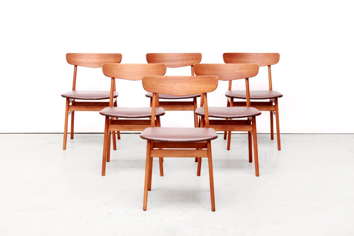 Set van 6 Deens design eetkamer stoelen van Farstrup Danish design dining chairs VAN ONS Amsterdam Gepubliceerd 10 november 2017 at 3236 × 2157 in Bruin leren vintage Deens design tweezitter bank ← Vorige Volgende →