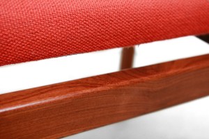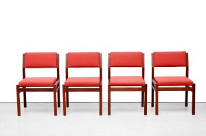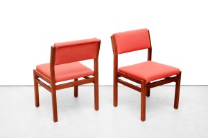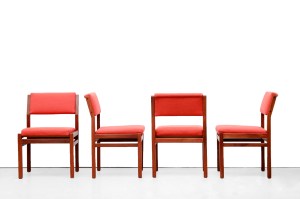 Omschrijving Vier mooie teakhouten Pastoe eetkamer stoelen uit de Japanse serie ontworpen door Cees Braakman in de jaren 60. Deze vier stoelen hebben een massief houten frame, en een nog originele rode wollen bekleding van de Ploeg op de zitting en rugleuning. De stoelen zijn in totaal 77 cm hoog, 50 cm breed, 50 cm diep en hebben een zithoogte van 45 cm.