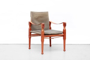 Omschrijving: Erg mooie vintage Safari stoel toegeschreven aan de beroemde Deense ontwerper Kaare Klint en geproduceerd in Denemarken. Dit model is gemaakt van massief teakhout , prachtig geleefd groen canvas en cognac kleurig tuiglederen armleuningen en riemen. Echt een unieke vintage fauteuil die een statement zal maken in uw interieur. De fauteuil is 55,5 cm breed, 57 cm diep en 80 cm hoog. De zithoogte is 40 cm.