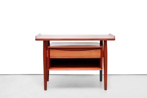 Omschrijving: Prachtige bijzet tafel met iconisch vormgegeven lade ontworpen door bekende Deense ontwerper Arne Vodder voor Sibast Mobler. Deze tafel met opbergruimte kan ook goed gebruikt worden als gangtafeltje met een spiegel erboven of als nachtkastje mocht je hier ruimte voor hebben. Dit meubelstuk is namelijk 73 cm breed, 46 cm diep en 50 cm hoog. Deze bijzet tafel is erg zeldzaam en wordt niet vaak te koop aangeboden.